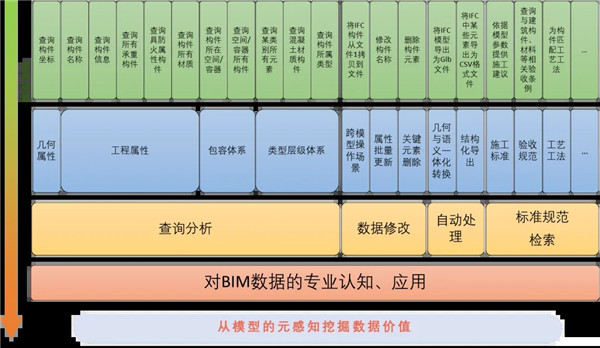 智能查询体系方面,设计覆盖构件坐标、空间定位等几何属性、材质构成、防火等级、承重特性等工程属性、空间与构件包容体系、类型层级体系等结构关系的多维语义解析能力。突破传统ID检索限制,实现基于自然语言描述的“混凝土楼梯构件提取”“核心筒内机电设备定位”等复合语义查询,支持动态关联分析与逆关系回溯,如从设备定位所属空间。