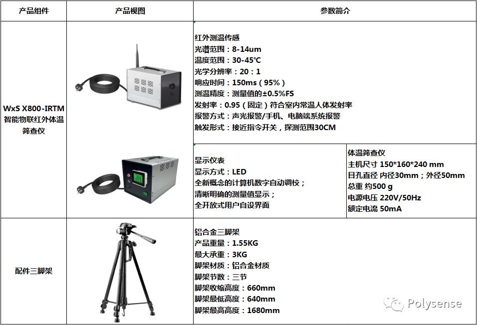 博立信(Polysense)针对新冠肺炎疫情共发布了四款解决方案分别是:1.WxS X800-IRTM固定式智能非接触红外体温筛查仪;2.WxS X800-061可穿戴式户外人员体温及行动轨迹监测物联终端;3.WxS X800-062便携式智能非接触红外体温筛查物联终端;4.WxS X800-021DM,NB-IoT门磁智能物联终端;作为一家科技型企业,博立信(Polysense)在新冠疫情期间,敢为人先,敢于担当,以物联网特有的方式奔走在疫情防控的跑道上!