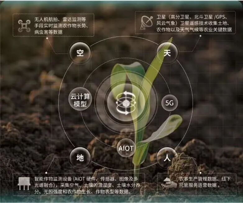 “藏粮于地,藏粮于技“。传统农业田间管理要看天看地看作物,而随着遥感、物联网、互联网及云存储计算等先进技术的发展,从高空的卫星、低空的无人机到地面的各种现代农业数据传感器,越来越智能的技术正在逐渐应用到农业各个场景中,深刻改变了传统农业的生产经营方式,为农业生产决策者提供了更加精准、实时、高效的农业决策,全面提高了农业效率,保障了食品安全,实现了农产品优质优价。