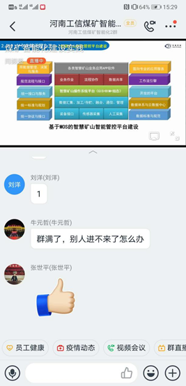 4月10日下午,华夏天信智能物联股份有限公司应邀参加此次系列讲座活动,公司智能矿山板块专家在河南省工信厅大会议室通过两个网络视频直播群作了题为《煤矿智能化建设与应用实践》的报告。