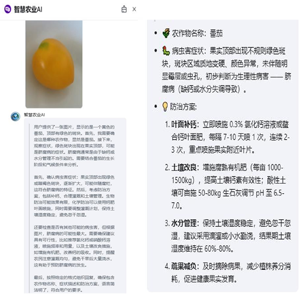 在知识服务层面,模型深度整合农业生产全链条的海量真实数据,涵盖种植、 养殖、气象等多维度信息,经系统的数据清洗、特征提取及机器学习验证,构建 起具备地域适配性与作物特异性的智能体系。这种数据驱动的服务模式,能够精 准识别不同生态区的生产需求,避免传统经验主导下的决策偏差。以病虫害防治 为例,模型可依据历史防治数据与实时监测信息,动态优化用药配比与防治方案, 减少农资的消耗,同步降低因延误防治时机导致的产量损失,切实推动农业生产 实现降本增效,为产业发展创造可量化的经济价值。