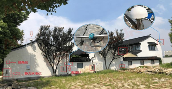 图中清晰展示各监测点位数据实时传输与显示情况,直观反映建筑结构状态,助力管理人员及时掌握情况并做出决策。