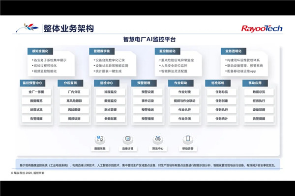 平台以高精度算法为引擎,融合深度学习、知识图谱与大数据分析,实现设备状态全息感知与运营安全智能预警;AI赋能全流程,从智能巡检到动态优化,构建智能巡检、人员安全等模型,实现全场景自感知、自判断、自优化,达到感知全面化、管理数字化、监控智能化、业务透明化的全方位要求,显著提升电厂运行效率与安全性,打造实时响应、主动防御的智能运维生态。