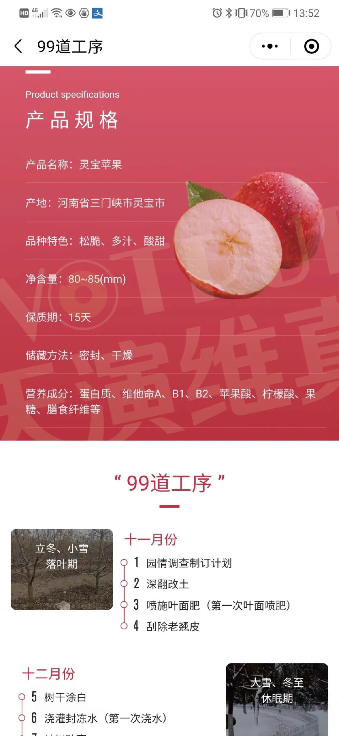 三门峡灵宝市素有“苹果之乡”的美誉,这里半山半塬,地貌多姿,昼夜温差大,黄土层深厚,适宜于果品生产。自1921年引进苹果种植,灵宝苹果已有百年历史,现已是享誉海外的河南特产,也是灵宝市支柱产业。