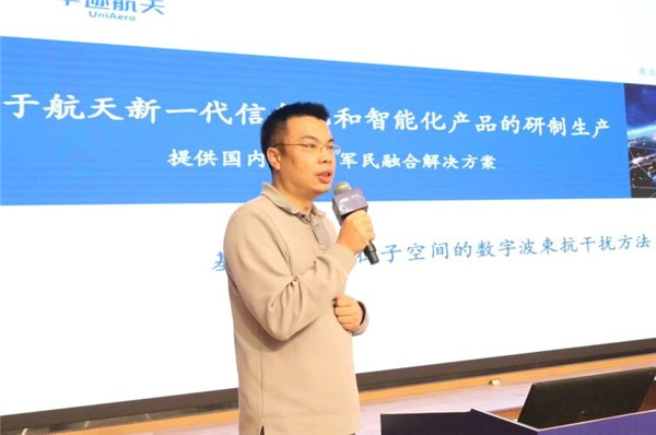 宇迹航天科技 (苏州) 有限公司联合创始人、执行董事 & CEO 王浡力博士作《基于信号特征子空间的数字波束抗干扰方法》主题报告